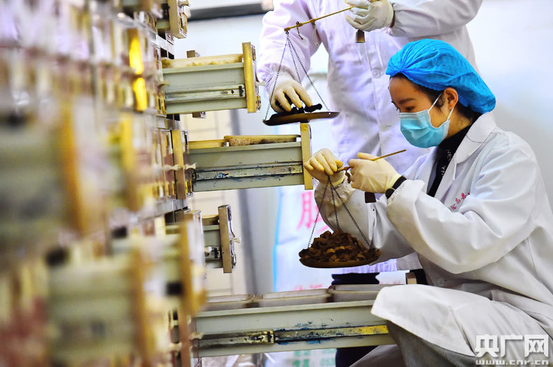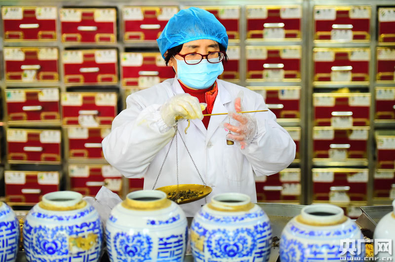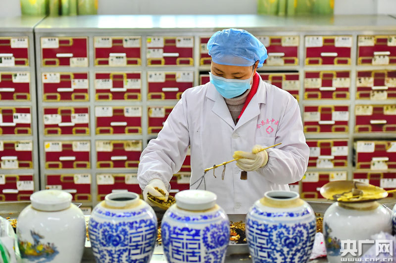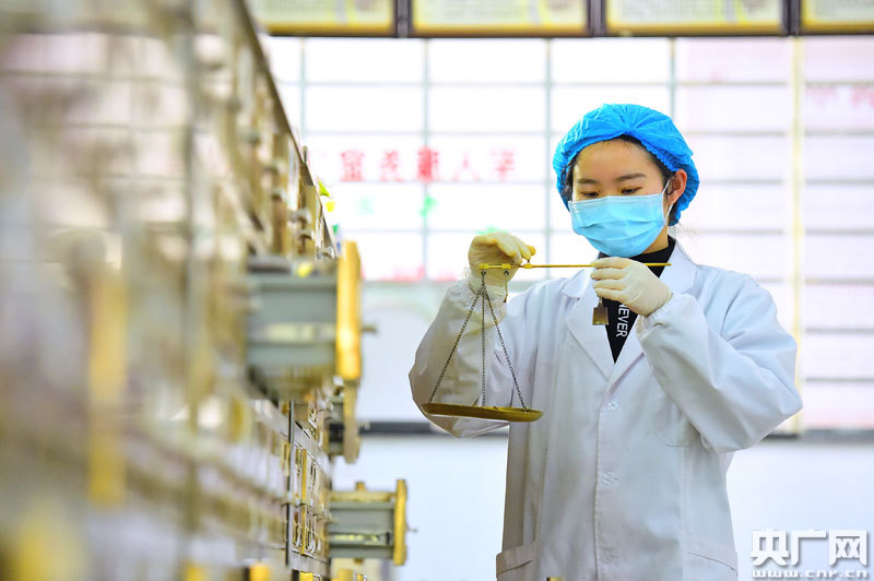 央廣網(wǎng)會(huì)昌2月20日消息(記者胡斐 通訊員朱海鵬)2020年2月20日,江西省贛州市會(huì)昌縣中醫(yī)院配藥房,藥師正在配藥。