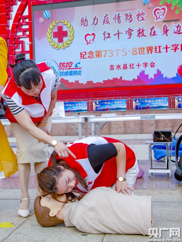 央廣網(wǎng)吉水5月8日消息(記者王一凡 通訊員涂藝椹 胡曦)為紀念第73個“世界紅十字日”和我國第12個“全國防災減災日”,弘揚“人道、博愛、奉獻”的紅十字精神,5月8日上午,吉水縣紅十字會在縣文化公園組織開展了“助力疫情防控,紅十字‘救’在身邊”應急救護知識培訓活動,為減少人員聚集,此次培訓采取了現(xiàn)場教學和視頻教學兩種形式,縣紅十字會志愿者20余人參與了現(xiàn)場培訓。