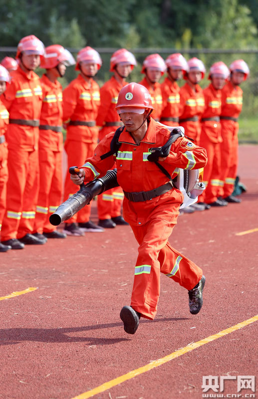 在比武現(xiàn)場記者看到,來自全市各地12個(gè)縣(市、區(qū))的參賽隊(duì)伍同臺(tái)競技,倆倆為一組,分別按照比武設(shè)置的高壓細(xì)水霧滅火機(jī)操作、背負(fù)式風(fēng)力滅火機(jī)操作、3000米、油鋸操作、單杠引體向上、水泵操作等科目進(jìn)行逐項(xiàng)比拼。此外,為檢驗(yàn)專業(yè)消防隊(duì)員的戰(zhàn)術(shù)理論能力,還專門設(shè)置了理論知識(shí)考場。