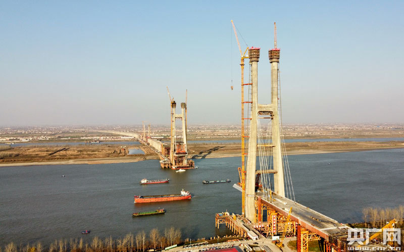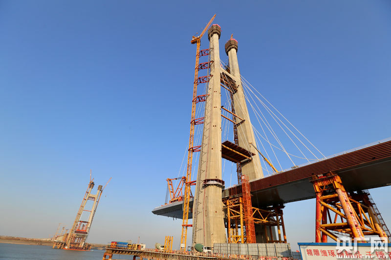 鳊魚(yú)洲長(zhǎng)江大橋主橋首個(gè)主塔封頂(央廣網(wǎng)發(fā) 通訊員供圖)