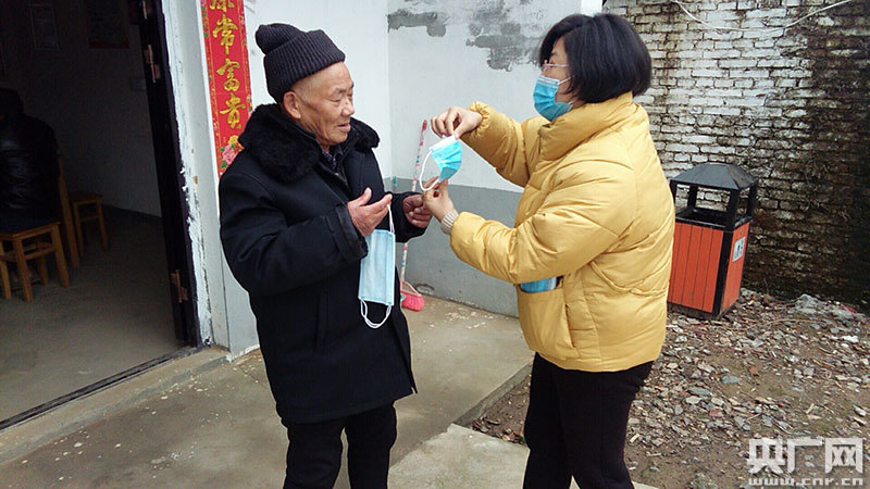 防疫形勢(shì)嚴(yán)竣,口罩十分緊缺,她帶著僅有的50只口罩,分發(fā)到9戶貧困戶家中,并且示范口罩的正確佩戴方法,叮囑貧困戶放松心情,加強(qiáng)防護(hù)。不僅是走進(jìn)貧困戶家中,她還和村干部一起,到村中設(shè)置的關(guān)卡點(diǎn)值班,勸告來往的村民做好防護(hù)措施。