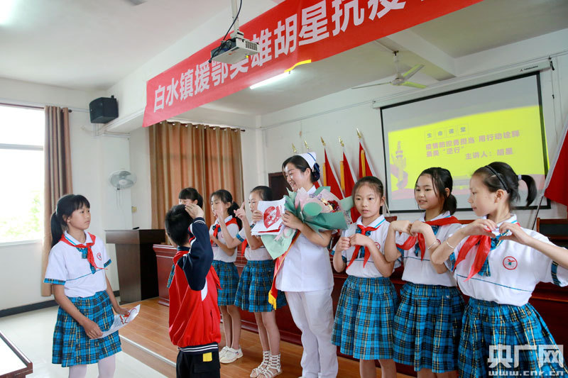 5月26號(hào),江西省吉安市吉水縣白水鎮(zhèn)邀請(qǐng)抗疫英雄、江西第二批援鄂醫(yī)療隊(duì)武漢武昌方艙醫(yī)院護(hù)理組組長胡星回到到母校白水鎮(zhèn)中學(xué)為同學(xué)們講述抗疫一線感人事跡,用她援鄂的親身經(jīng)歷傳播正能量,為孩子們進(jìn)行思想教育,愛國教育,理想教育,弘揚(yáng)新時(shí)代精神。(通訊員廖敏 吳小金)