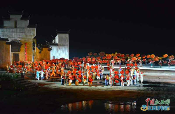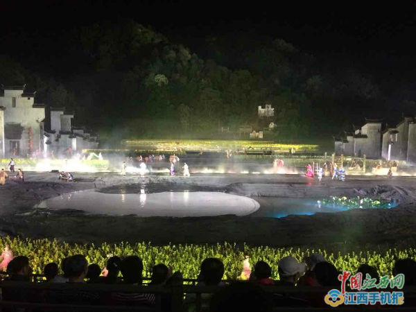 4月16日晚上8時(shí)許,婺源大型山水實(shí)景演出《夢(mèng)里老家》現(xiàn)場來了一群特殊的游客,他們是來自全國近50家融媒體看江西的采訪團(tuán)成員。面對(duì)這樣一場大型演出,許多人還是第一次目睹了這場層出不窮的民俗風(fēng)情美、徽派建筑美和人文藝術(shù)美的大戲。