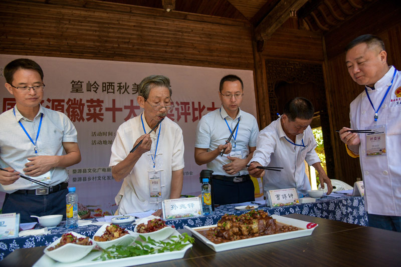 央廣網(wǎng)婺源9月24日消息(記者王一凡)看曬秋美景,品地道美食,中國(guó)婺源徽菜十大名菜評(píng)比大賽于9月23日在婺源篁嶺舉辦。本次比賽以婺源徽菜為主題,立足婺源徽菜體系,旨在構(gòu)筑一個(gè)展示鄉(xiāng)土特色飲食的交流平臺(tái),促進(jìn)婺源旅游美食行業(yè)發(fā)展。