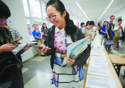 記者在光華管理學(xué)院的報(bào)到現(xiàn)場(chǎng)見到了今年北京的高考理科狀元?jiǎng)⒅顷。梳著馬尾辮、穿著裙子的她抱著一大堆報(bào)到資料、書籍,還得騰出一只手用手機(jī)掃學(xué)院的“北大光華本科項(xiàng)目”微信二維碼,“有些忙亂,但是很興奮。”她笑著說,父母在宿舍里幫著收拾東西,自己先過來學(xué)院辦一些手續(xù)。