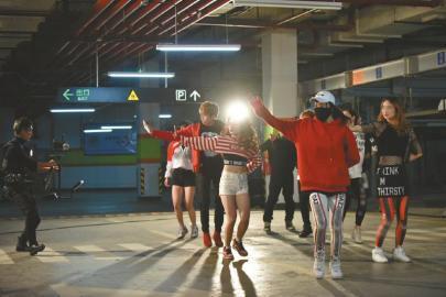 這幾天成都仍在經(jīng)歷寒潮,夜晚氣溫徘徊在2℃左右。晚上11點(diǎn),在春熙路的一個(gè)地下車(chē)庫(kù),這群學(xué)員們穿著露臍裝、超短褲,冷得瑟瑟發(fā)抖。晚上,他們要錄制一個(gè)韓國(guó)音樂(lè)舞蹈視頻。音樂(lè)響起,他們好像立馬不冷了,邊跳舞,邊對(duì)著鏡頭做表情。