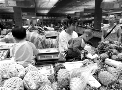在新民菜市場,其他菜販的還未到上學(xué)年紀的孩子在李霞的攤位上嬉戲。