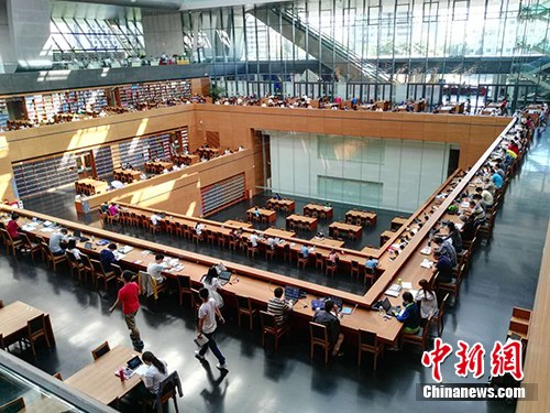王贊向記者證實了這樣的說法,“前幾個月放暑假的時候,來看書的人就很多。那時候甚至有不少人坐在(閱覽室的)地上看書,靠著墻,一排一排的”!斑@幾天大家都放假,人會多些。暑假時看書的人更多,如果晚到一點可能就占不到好座位了!