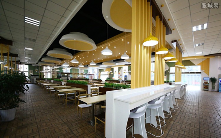 據(jù)悉,食堂內(nèi)部全場(chǎng)以暖色調(diào)為主,搭配有墨綠色、白色的桌子和凳子,橘色和白色的吊燈,更有鏤空設(shè)計(jì)的凳子,文藝且不失藝術(shù)感。