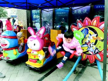 “爸爸的爸爸叫什么,爸爸的爸爸叫爺爺……”一邊播放著童謠,一邊搖晃擺動的兒童搖搖車,在城市中隨處可見。只要投進一元硬幣,小朋友就能乘坐三分鐘。由于價格便宜、造型卡通、色彩鮮艷,這種搖搖車受到不少小朋友的歡迎。春節(jié)期間,孩子們排隊爭坐搖搖車的場景更是常見。