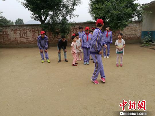 圖為石家莊市第四十二中師生與任家莊小學(xué)的學(xué)生一起做游戲!±钛 攝