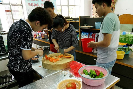 楊海北是河北唐山人,來到湖北上大學后,經(jīng)常聽到周圍的同學懷念家鄉(xiāng)菜的聲音,但是學校食堂吃不到自己想吃的菜,又不能在寢室里開火做飯。“為什么不建立一個平臺,讓大家既可以動手做自己想吃的菜,同時還可以提供空間讓大家一起享用呢?”楊海北迅速把自己的想法和校飲食中心的郭經(jīng)理反映,兩人一拍即合。經(jīng)過半年的準備工作,今年5月20日,共享廚房正式“誕生”。