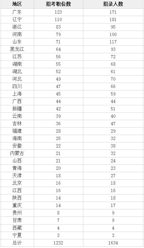 截止11月2日2018國考各地?zé)o人報考情況一覽