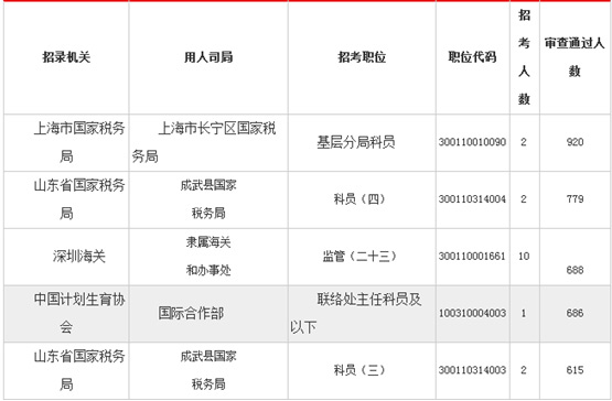 2018國(guó)考報(bào)名過(guò)審人數(shù)最多前五職位[截止11日2日16時(shí)]