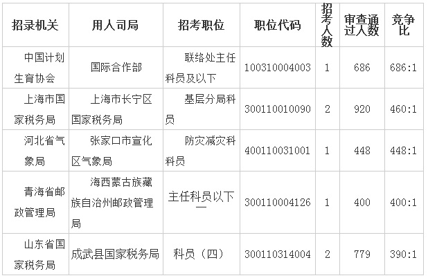2018國(guó)考報(bào)名競(jìng)爭(zhēng)最激烈前五職位[截止11日2日16時(shí)]