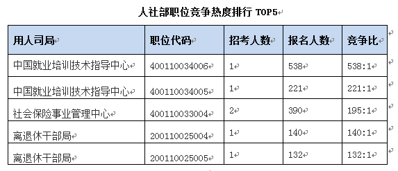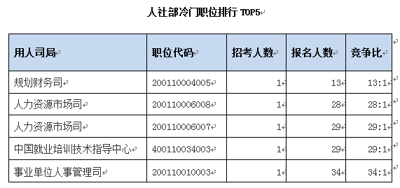 國考報(bào)名第八天,距報(bào)名結(jié)束只有兩天了,根據(jù)歷年國考十天的報(bào)名情況得出國考報(bào)名第八天是集中填報(bào)的高峰期,之后會出現(xiàn)下降趨勢。人社部競爭最激烈的職位依然是中國就業(yè)培訓(xùn)技術(shù)指導(dǎo)中心質(zhì)量督導(dǎo)辦公室主任科員及以下職位,職位代碼400110034006,這一職位勢必會一直占據(jù)人社部最熱職位榜首。我們在報(bào)名時(shí)要避熱就冷,下面我們來看一下,人社部最冷的職位有哪些?