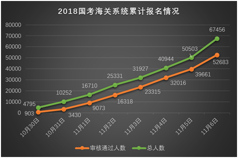 人民網(wǎng)北京11月7日電 (張歌)昨日是國考報名第八天,據(jù)統(tǒng)計,截止到昨日下午16:00,海關系統(tǒng)累計已通過審核總?cè)藬?shù)為52683,相比11月5日增加13022人,待審核人數(shù)為14773。海關系統(tǒng)已有583個職位有考生通過審核,占職位總數(shù)的95.7%。深圳海關隸屬海關和辦事處 監(jiān)管(十一)職位審核通過人數(shù)最多,已經(jīng)由1645人暴漲至2431人。