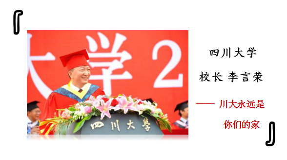 同學(xué)們,川大就是你身后的遠(yuǎn)景,順境時為你們祝福、為你們高興,逆境時就是你背后的靠椅,給你以支撐。同學(xué)們,昨天晚上我在學(xué)校BBS上看到一位小哥的留言:藍(lán)天在上,黃土在下,若干年后,再約川大!待到那時,都成爹媽,勵志兒女,還考川大!同學(xué)們,不管大家今后身在何地、身處何境、身遇何事,川大永遠(yuǎn)是你們的家。