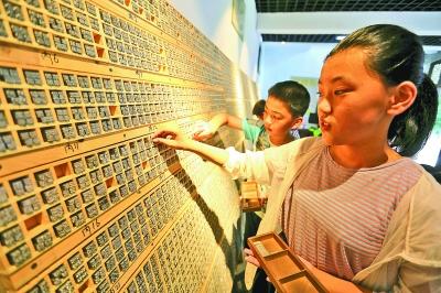 7月16日,山東省臨沂市沂南縣竹泉村,研學(xué)旅行的孩子們?cè)凇皶r(shí)光印記活字印刷體驗(yàn)館”內(nèi)體驗(yàn)活字印刷。暑假期間,各地的孩子們紛紛通過豐富多彩的形式“學(xué)藝”充電。新華社發(fā)