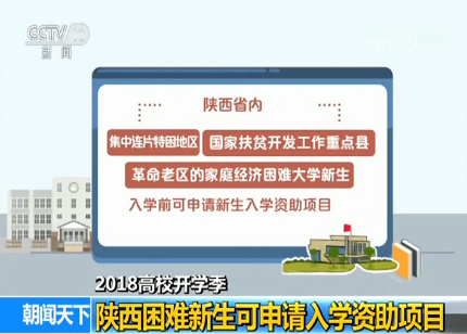 陜西省內集中連片特困地區(qū)、國家扶貧開發(fā)工作重點縣、革命老區(qū)的家庭經(jīng)濟困難大學新生,入學前可申請新生入學資助項目。就讀本省院校的每人500元,就讀省外院校的每人1000元。同時,在陜西省地方高校就讀的建檔立卡家庭的大學本專科學生,每人每年還可領取6000元的助學金生活補助。