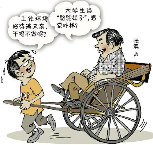 對于月入過萬的大學(xué)生車夫,是否能獲得大學(xué)生的青睞,記者采訪了20名大專以上學(xué)歷的大學(xué)生,有15人明確表示不考慮,應(yīng)屆畢業(yè)生劉林說:“這個待遇對于剛畢業(yè)的大學(xué)生來說算是挺不錯了,但車夫聽上去很低端,像是賣體力活兒的,沒有什么附加價值。”也有人認(rèn)為“實(shí)在沒辦法跟親戚朋友開口啊,別的同學(xué)一說是白領(lǐng),多少錢別人不管,好歹坐辦公室,一說我在北京蹬三輪車,父母都抬不起頭來!焙幽先藦垬诽寡。