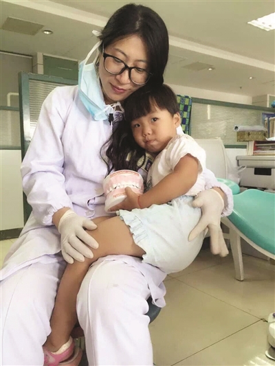 記者了解到,昨天上午十點(diǎn)多鐘,蘇北人民醫(yī)院囗腔診室來(lái)了個(gè)三歲半的小女孩,孩子乳牙反合,當(dāng)天必須給她帶上功能矯治器。口腔科的護(hù)師們介紹,當(dāng)時(shí)小女孩看著穿白大褂的醫(yī)生,張大嘴巴使勁哭著,害怕地緊緊抓著媽媽的衣服,眼里充滿著恐慌和不安。