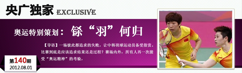 * 中國(guó)羽毛球頭號(hào)女雙組合“讓球”敗給韓國(guó) 現(xiàn)場(chǎng)遭噓 在31日的倫敦奧運(yùn)會(huì)羽毛球女雙小組賽A組最后一場(chǎng)比賽中,世界排名第一的中國(guó)組合于洋/王曉理以14:21和11:21爆冷不敵韓國(guó)組合鄭景銀/金荷娜,由于雙方在場(chǎng)上失誤頻頻,擊球不是出界就是下網(wǎng),比賽時(shí)溫布利體育館內(nèi)噓聲四起,F(xiàn)場(chǎng)的觀眾則很不理解:“雙方在國(guó)際水平以下,簡(jiǎn)直是訓(xùn)練的水平,這對(duì)其他選手是不公平的。中國(guó)是體育大國(guó),應(yīng)該給其他隊(duì)伍做個(gè)榜樣,在賽場(chǎng)上應(yīng)該代表中國(guó)的形象! |
