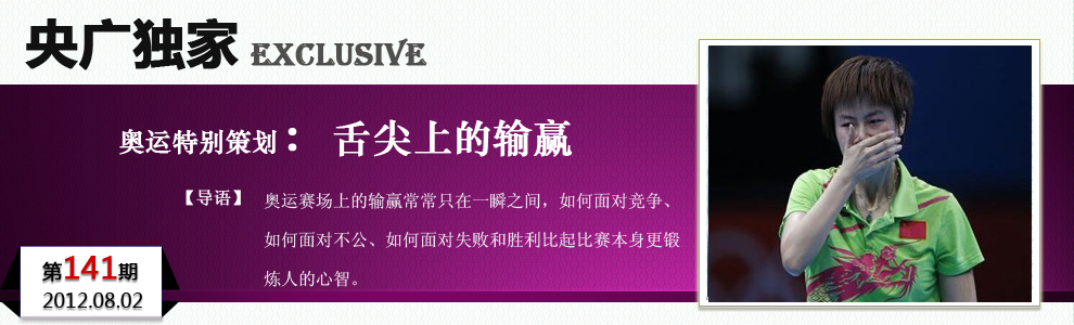 * 乒球女單決賽后均痛哭 丁寧、李曉霞不握手 2012年倫敦奧運會乒乓球女單冠軍爭奪戰(zhàn)剛剛結束,國手李曉霞苦戰(zhàn)五局以4-1(11-8、14-12、8-11、11-6、11-4)戰(zhàn)勝隊友丁寧成功奪冠。比賽進程中,丁寧三度發(fā)球被判罰違例扣掉4分,局間通過翻譯向組委會表達強烈不滿,并且在賽后丟冠后與央視記者周到抱頭痛哭。