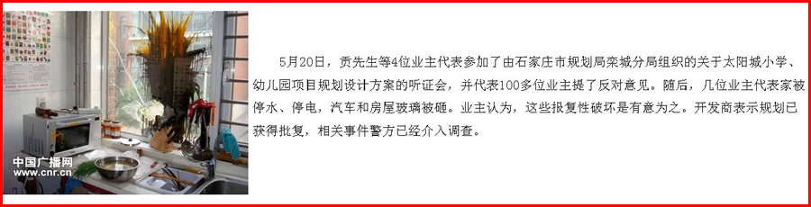 巧合的是,就在幾天之前,在河北欒城,4位業(yè)主代表參加了由石家莊市規(guī)劃局欒城分局組織的關(guān)于太陽城小學、幼兒園項目規(guī)劃設(shè)計方案的聽證會,并代表100多位業(yè)主勇敢的提了反對意見。令人驚訝的是,本該自主表達民意的舞臺,卻出現(xiàn)不和諧的場景。提出反對意見的業(yè)主代表慘遭報復,甚至連家都不敢回!褚馀c代表意見出現(xiàn)明顯不同,是代表沒當好,還是代表不敢說不好? |