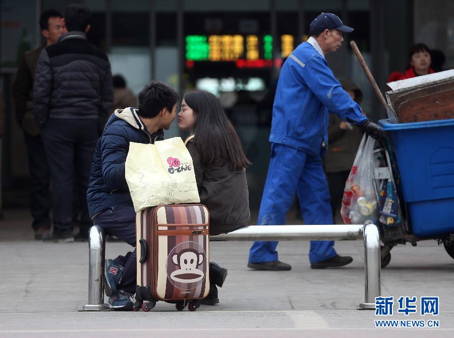 在長(zhǎng)沙火車站進(jìn)站口,有一排金屬隔離欄。春運(yùn)期間,大批旅客從這里經(jīng)過,不時(shí)有人停下來休息。在春運(yùn)大潮中,這張臨時(shí)坐凳就像一個(gè)小舞臺(tái),見證了每一位匆匆過客在春運(yùn)大戲中的一次短暫演出。新華社記者 李尕 攝(編輯:劉杰)