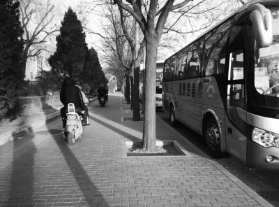 近日,讀者丁先生致電本報,在朝陽區(qū)地鐵四惠東站A口的馬路旁,每天有多輛大型旅游客車停在京通快速路輔路的非機動車道內(nèi),接送游客,影響了非機動車的通行,給騎車人帶來麻煩。他希望管理部門盡快來規(guī)范這些旅游車停車,保證非機動車正常通行。
