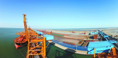 河北港口集團(tuán)滄州黃驊港礦石港務(wù)有限公司20萬(wàn)噸級(jí)礦石碼頭是河北省南部沿海地區(qū)大型專業(yè)化碼頭,碼頭規(guī)劃四個(gè)泊位,先期建設(shè)兩個(gè),年設(shè)計(jì)通過能力3000萬(wàn)噸。圖為碼頭正在進(jìn)行礦石卸船作業(yè)。許金廣攝