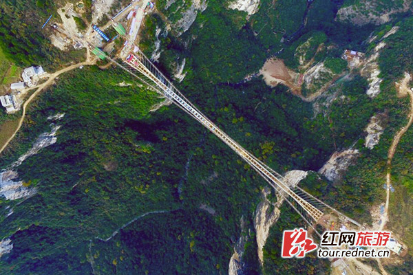 景區(qū)還透露,預(yù)計于2017年底,建于目前世界最高最長玻璃橋上的蹦極臺將建成并與游客見面。據(jù)測算,玻璃橋面距離谷底相對高度約300米,屆時這或?qū)⒊蔀槭澜缟献罡叩谋臉O臺。