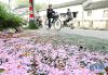 •   4月17日,一夜風(fēng)雨過后,江蘇南通洲際綠博園櫻花大道上櫻花花瓣飄落一地。 新華社發(fā)(許叢軍 攝)