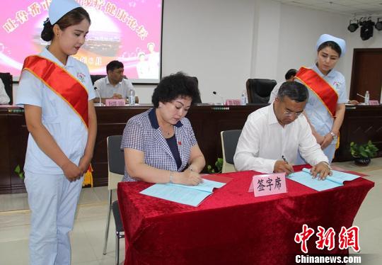 圖為新疆吐魯番市與新疆醫(yī)科大學(xué)簽訂《戰(zhàn)略合作框架協(xié)議》!≡ 攝