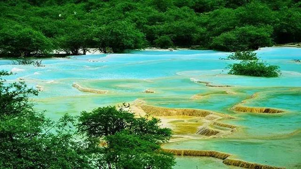 山林倒映水中,樹(shù)在水中長(zhǎng),水在林中游;瀑布瀉入湖中,層層迭迭;五彩池流光溢彩,清澈神秘。在這電影般的景色里跟朋友悠閑地散步聊天,與美景相擁,沖淡傷感的離愁別緒。
