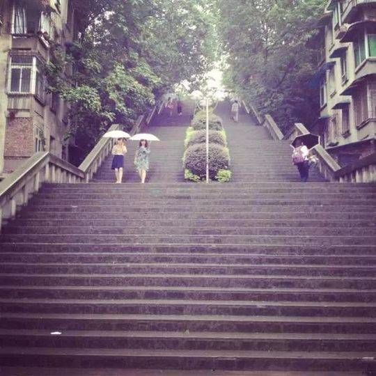 重郵:奪命天梯。重郵的天梯共115級(jí),兩邊都是宿舍,女生宿舍位于頂端,這意味著他們每天都要跟天梯打交道。重郵學(xué)子說,爬過奪命天梯,其他的梯坎都是浮云。