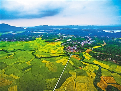 日前,在江西省上饒市鉛山縣河口鎮(zhèn)玉石村,金黃色的稻田與線條優(yōu)美的田埂構(gòu)成了美麗畫卷。立秋以后,鉛山稻子進(jìn)入成熟期,從空中俯瞰,色彩斑斕的稻田,猶如秋天繪制的“調(diào)色板”,美不勝收。