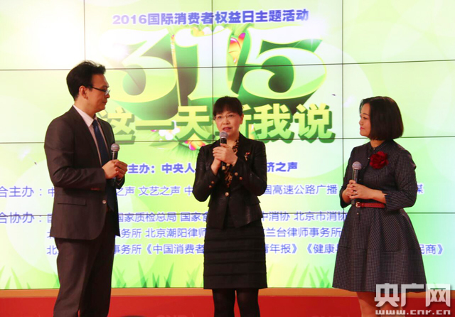 央廣網(wǎng)北京3月15日消息 在國際消費者權(quán)益來臨之際,由中央人民廣播電臺經(jīng)濟之聲主辦的“2016年國際消費者權(quán)益日主題活動——3·15,這一天聽我說”在北京舉行。