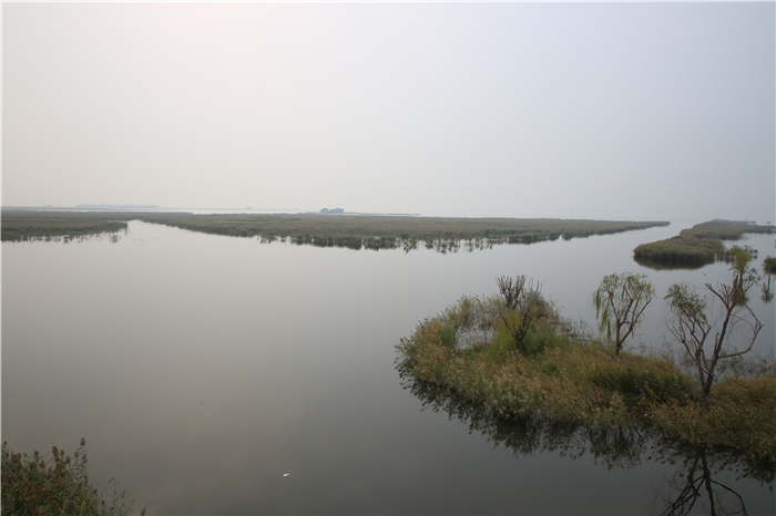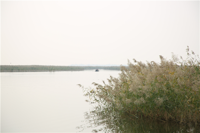 站在船上遠眺,一層薄霧籠罩著碧綠的湖面,水光瀲滟、蘆葦搖曳,魚兒相逐、群鳥翩躚,幾只白鷺撲棱著潔白的翅膀,悠然地飛向蔚藍的天際。天水相接之處,幾座蒼翠的小山點綴其間。“真的太壯觀了,跟海一樣,一眼望不到邊!闭驹诖^,采訪團記者們?nèi)滩蛔「袊@,紛紛拿出相機、手機拍照留念。
