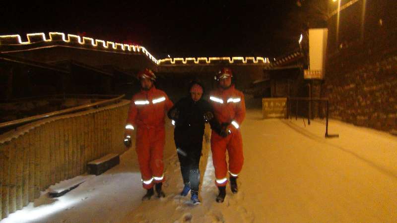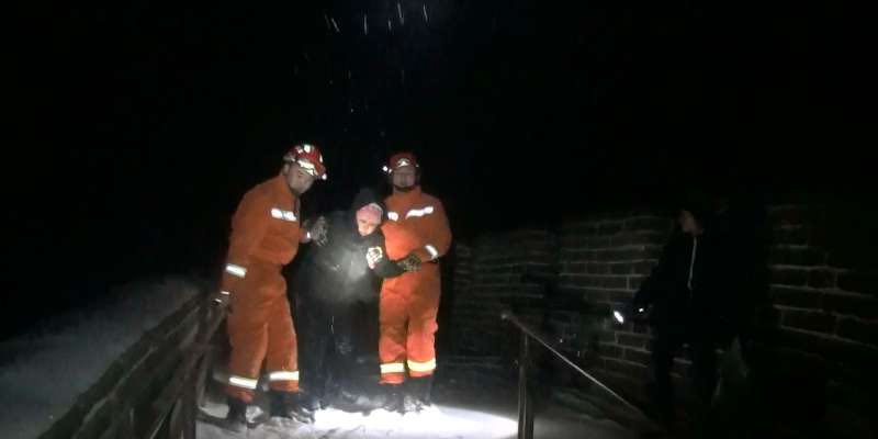 據(jù)延慶消防支隊官兵介紹,因今日下大雪,長城上到處都是積雪和薄冰,且在登城途中多處是狹窄路段,一側是懸崖峭壁,一側是叢林深淵,稍不小心就可能滑到兩邊的壕溝里,同時因在山區(qū),手機信號出現(xiàn)時斷時續(xù),更是加大了救援的難度。搜救過程異常艱難和危險,消防官兵經(jīng)過約1個小時的艱難攀爬,終于尋找到了被困人員。