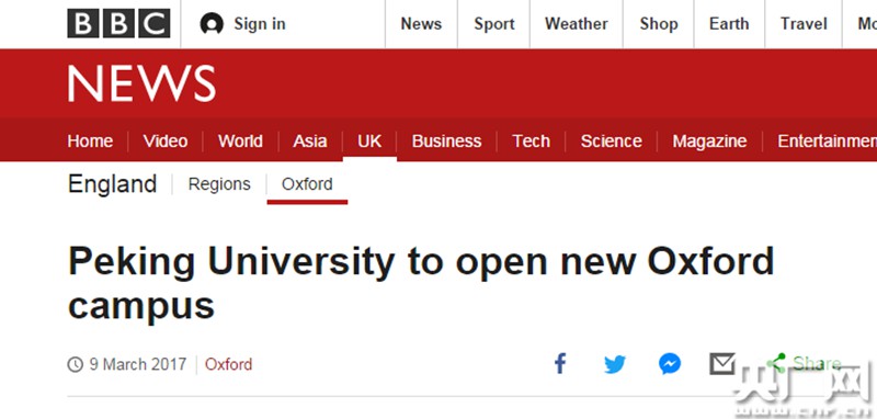 圖為英國BBC報道:北京大學開設(shè)牛津新校區(qū)