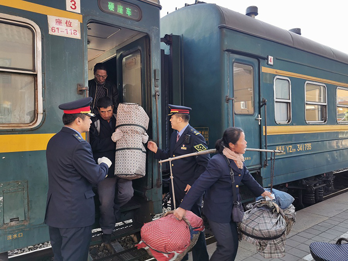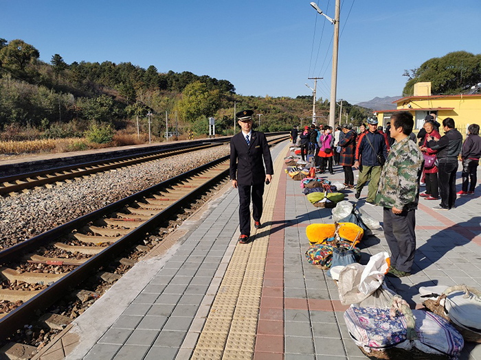 據(jù)承德車務段新杖子站長崔靖宇介紹,該站點一年四季都有“大筐隊”旅客乘車進城,每天有百十來人。工作人員和老鄉(xiāng)們都很熟悉,會盡可能地幫助他們,如遇到列車運行圖調(diào)整列車車次時間,他們會第一時間告訴村干部,通知到老鄉(xiāng);平時加強安全宣傳,還會為“大筐隊”開辟綠色通道,把貨運到離上車最近的地方;車站還會積極跟調(diào)度部門溝通,在調(diào)整運行圖時科學設置攜帶行李較多的“大筐隊”上下車的時間。