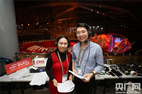 圖為中央廣播電視總臺央廣現(xiàn)場直播團(tuán)隊(duì)(央廣網(wǎng)記者 韓靖 攝)