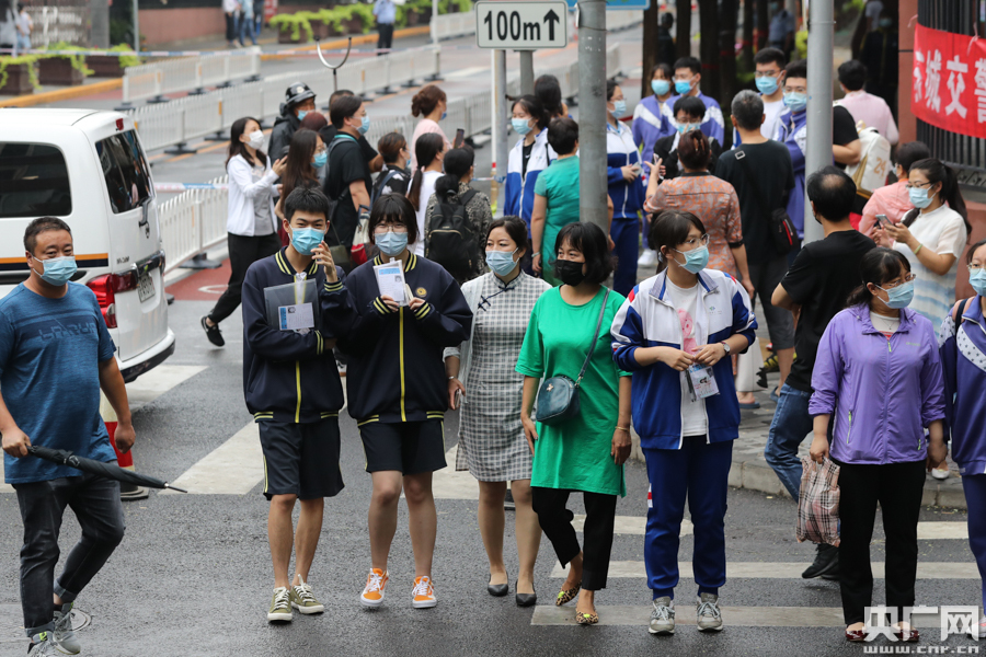 7月9日,北京廣渠門中學(xué)考點(diǎn),物理科目考試結(jié)束后考生走出考場(央廣網(wǎng)記者 韓靖 攝)