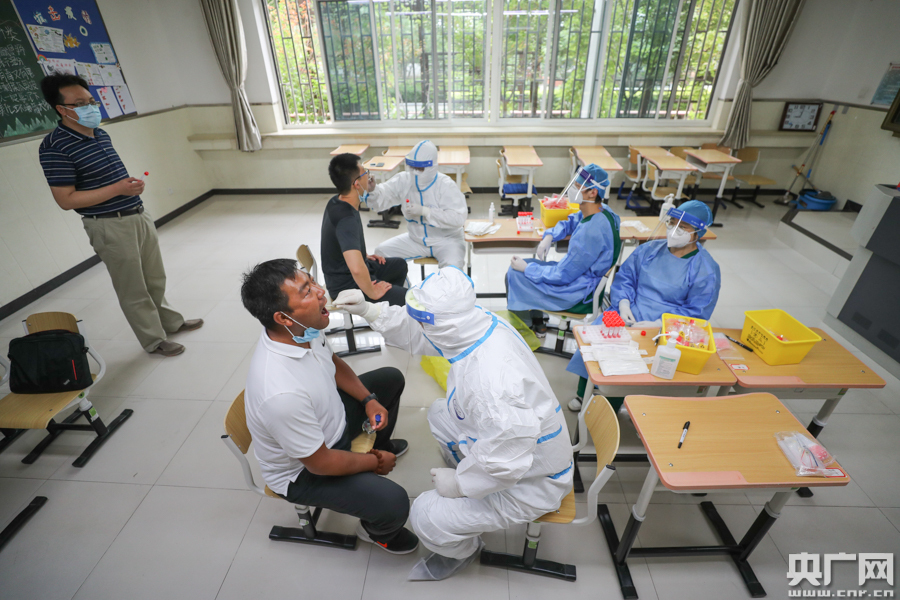 7月4日,北京市通州區(qū)運河中學考點,參與高考考務工作的所有教職員工共計113人及高三送考教師20人當日進行了核酸檢測(央廣網(wǎng)記者 韓靖 攝)
