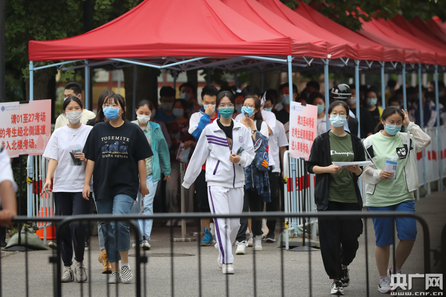 7月10日,北京中關村中學考點,高考結束后考生陸續(xù)走出考場(央廣網(wǎng)記者 韓靖 攝)