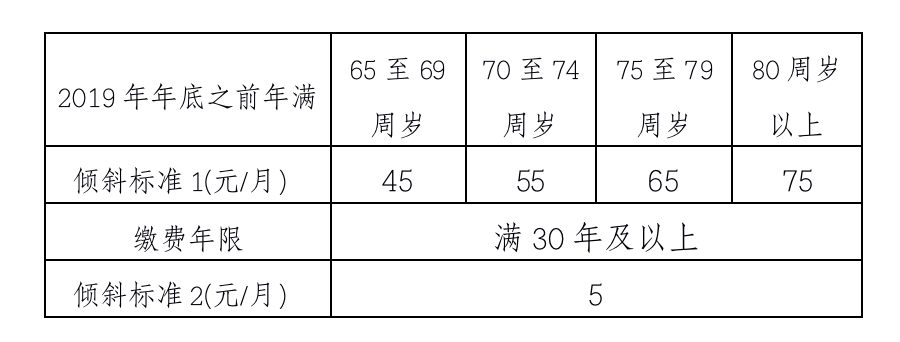 同時(shí),針對退休時(shí)間早、年齡偏大的退休人員,為了進(jìn)一步提高他們的基本生活水平,自2007年起,北京市在調(diào)整企業(yè)退休人員基本養(yǎng)老金時(shí)均向高齡退休人員適度傾斜。2016年首次同步調(diào)整企業(yè)和機(jī)關(guān)事業(yè)單位退休人員養(yǎng)老金時(shí),保持了這一做法。2020年繼續(xù)堅(jiān)持這一做法,對在2019年12月31日(含)之前已經(jīng)年滿65周歲及以上的高齡退休人員,在按照上述辦法進(jìn)行調(diào)整后,再次享受到45元至75元四個(gè)檔次的傾斜政策。即:65至69周歲的退休人員每人每月再增加45元;70至74周歲每人每月再增加55元;75至79周歲每人每月再增加65元;80周歲以上每人每月再增加75元。