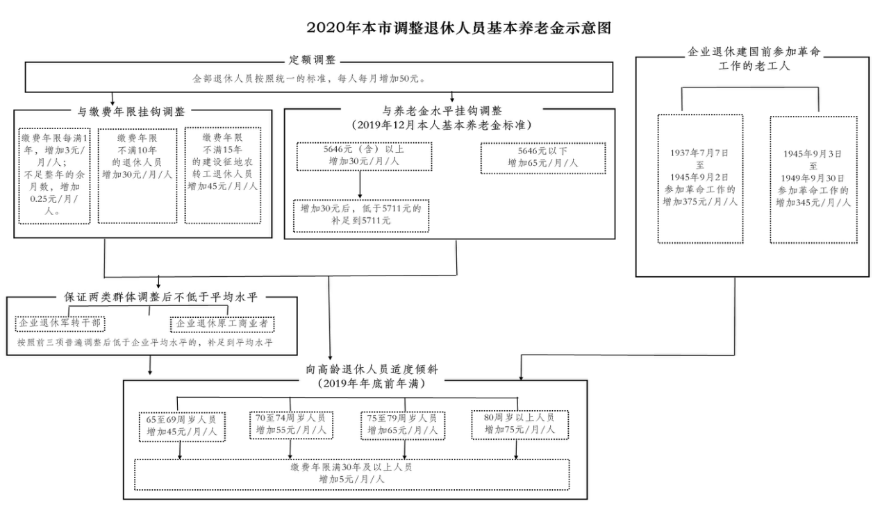 北京市機(jī)關(guān)事業(yè)單位2019年12月31日(含)前退休的人員,也將按照上述定額調(diào)整、掛鉤調(diào)整與適當(dāng)傾斜相結(jié)合的辦法和調(diào)整標(biāo)準(zhǔn)進(jìn)行調(diào)整,并于7月底前發(fā)放到位。