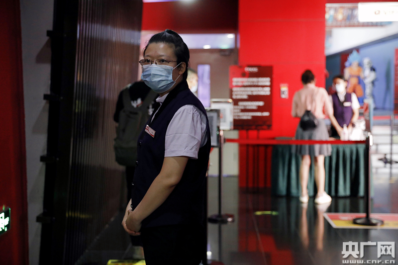 與以往相比,工作人員的“崗位”分布在了影院各個角落,全力做好健康碼查驗、體溫檢測、觀眾引導等工作。